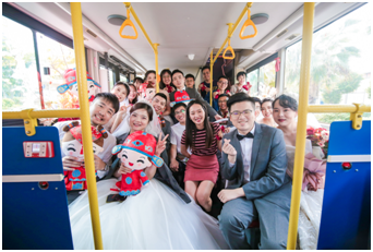 一早,異地新人在家屬的陪伴下坐上了專屬的幸福巴士,領(lǐng)略環(huán)島風(fēng)光,認(rèn)識(shí)美麗新廈門,更收獲了一份意外祝?!獜B門地區(qū)支行的同事驚喜現(xiàn)身,為新人們獻(xiàn)歌、獻(xiàn)花,送上寓意“早生貴子”的甜湯,歡聲笑語一路飄揚(yáng)。