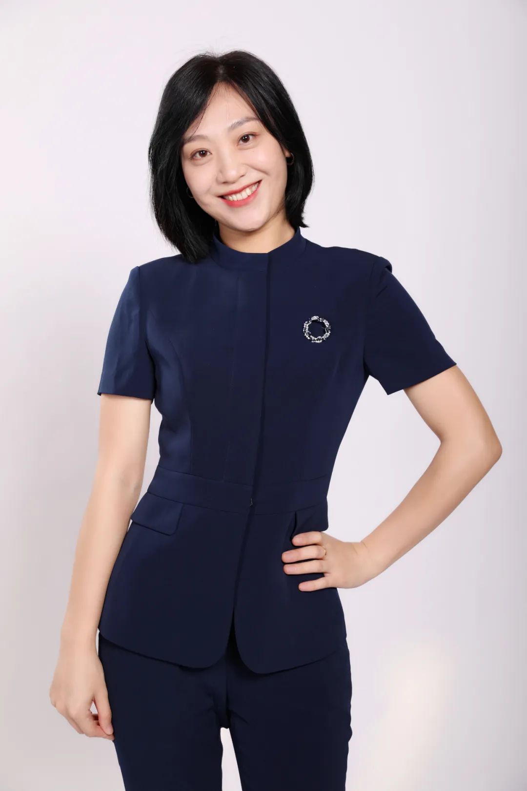 由于時(shí)常需要伏身與客戶對(duì)話,衣領(lǐng)的設(shè)計(jì)是否貼身對(duì)女性員工來說至關(guān)重要。連衣裙的圓領(lǐng),套裝的立領(lǐng),均考慮到了女裝貼合身材的需求,讓服務(wù)時(shí)的舉止更顯優(yōu)雅從容。