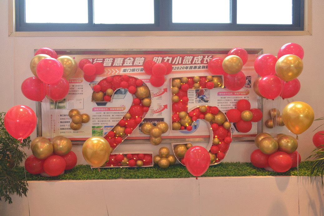 廈門(mén)、福州、莆田等地區的各營(yíng)業(yè)網(wǎng)點(diǎn)舉辦了各具創(chuàng )意的慶?;顒?dòng)。有的邀請客戶(hù)一起切蛋糕、吹蠟燭;有的布置了“happybirthday”字樣的氣球;有的用玫瑰花裝飾出“25”字樣,并邀請客戶(hù)、員工一起分享生日蛋糕,傳遞生日喜悅……全體員工還收到了精心準備的小蛋糕,甜蜜與幸福洋溢在每位員工的笑臉上。大家為廈門(mén)銀行送上祝福,祝愿廈門(mén)銀行風(fēng)華正茂新征程,青春有為譜新篇。